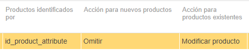 Después, utilice este mismo archivo CSV para importar los nuevos datos utilizando id_producto_atributo y referencia en su mapping.