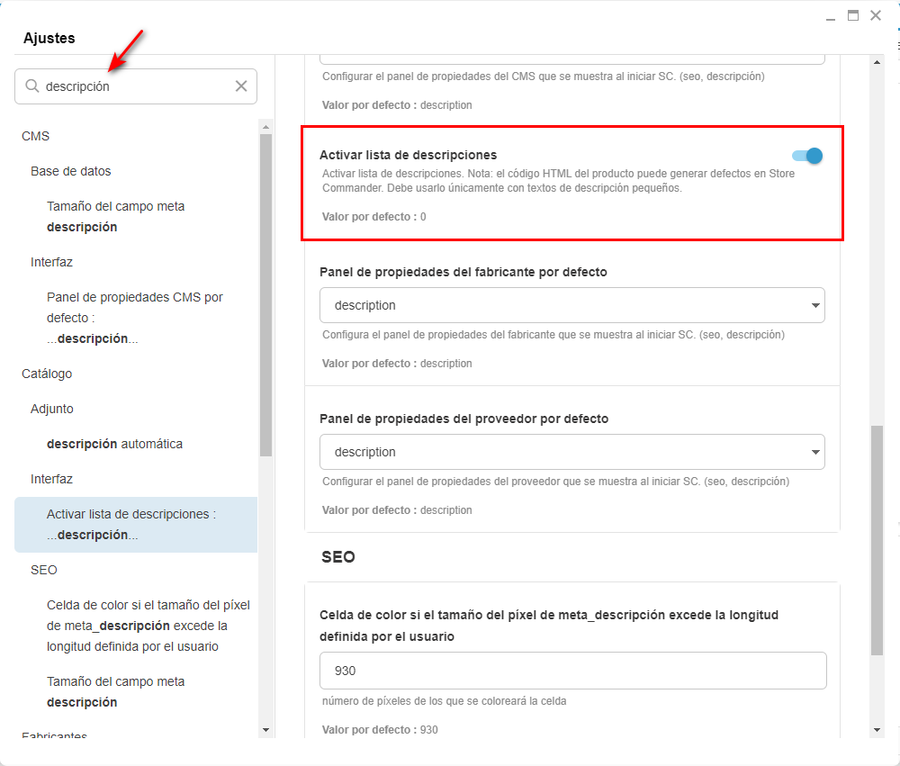 Si esta vista no aparece en el menú desplegable de "vistas", vaya a Herramientas > Preferencias > Interfaz > Activar la vista "Descripciones" de la parrilla de productos > introduzca el valor 1 para activar la vista.