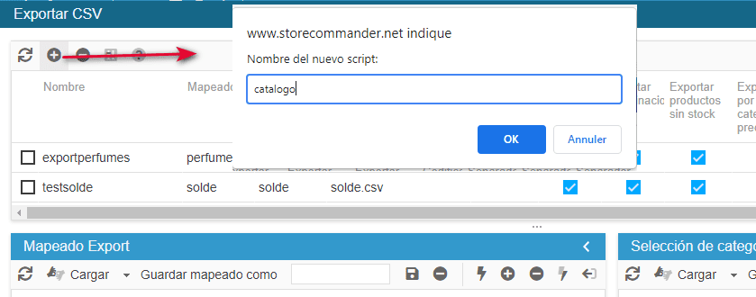 En el panel principal, haga clic en el icono para crear un nuevo script de exportación.