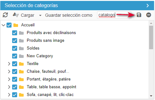Para tener en cuenta los productos en la exportación, habrá que seleccionar las categorías en las que figuran esos productos, simplemente marcando las correspondientes casillas.