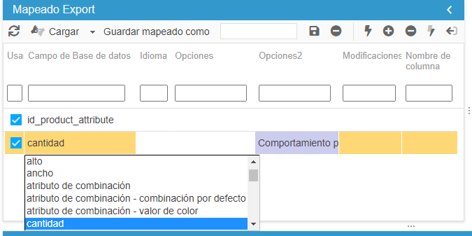El número introducido añadirá el número de líneas correspondiente en el panel del mapping. Entonces tendrá que seleccionar los campos de cada línea haciendo doble clic en la columna «Campo de la base» en cada una de las líneas que haya añadido.