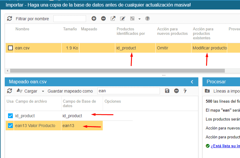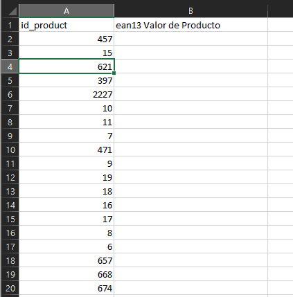 NOTA: no olvides modificar el formato de la columna EAN para que aparezcan como números clásicos y no científicos.