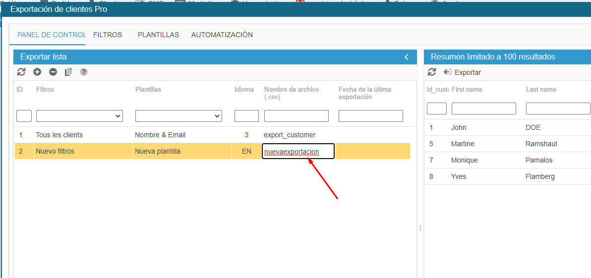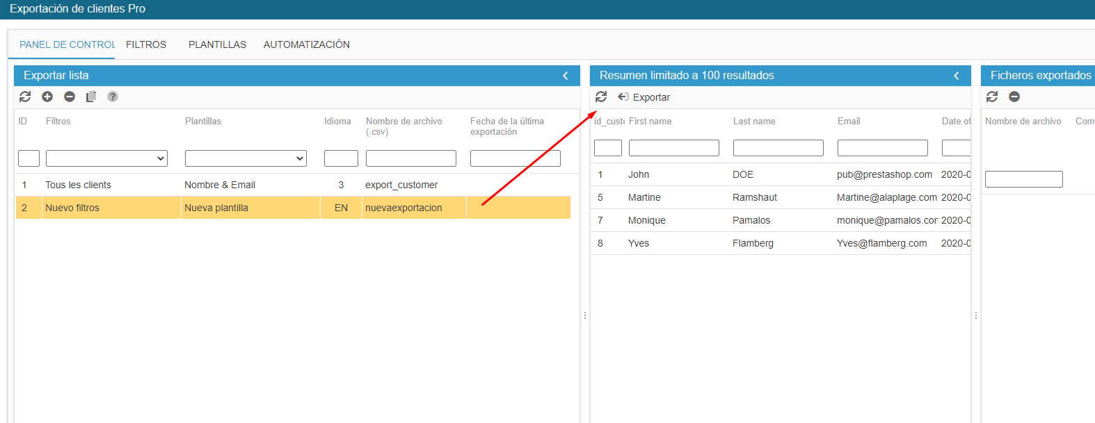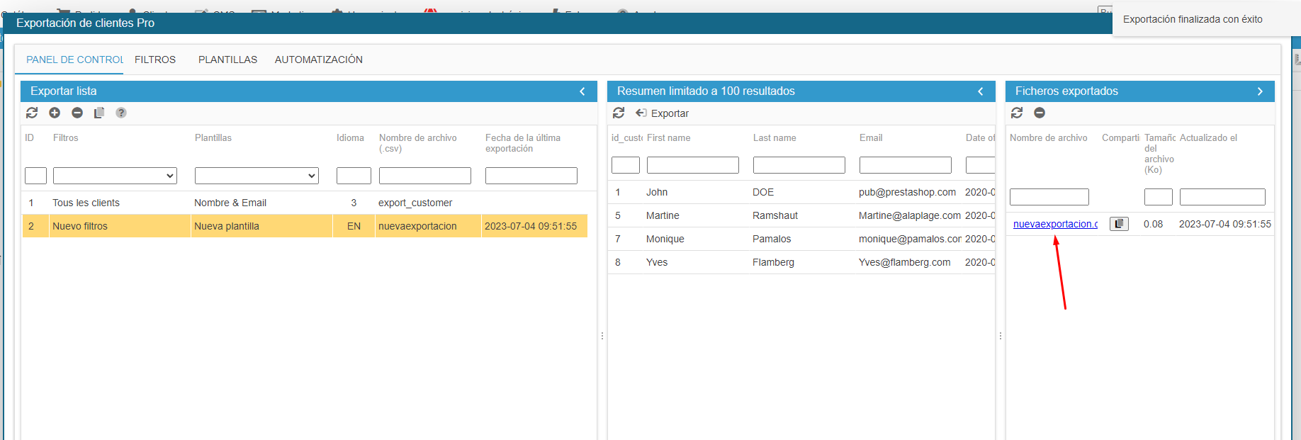 Con Store Commander, puede generar una exportación de su base de clientes de forma rápida y sencilla a través de nuestra herramienta de exportación de clientes PRO (disponible en nuestras suscripciones SOLO+ y Multistores+).