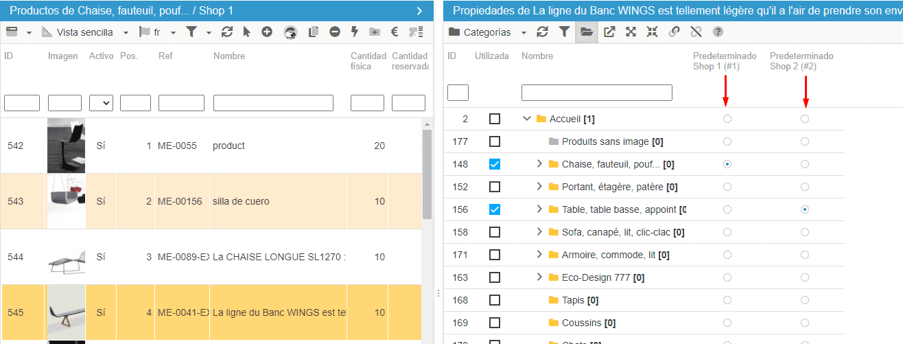 Cuando un producto está presente en varias tiendas, es posible definir su categoría por defecto en cada una de sus tiendas. Esto significa que el producto puede tener la categoría A como categoría por defecto en la tienda 1, y la categoría Z como categoría por defecto en la tienda 2.