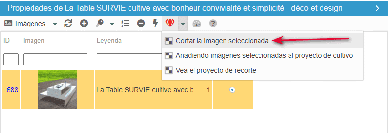 Todas la imagenes estan ahora cargadas en su producto (1)All images are now loaded on your product (1) y ya puede utilizar la herramienta de recorte de imágenes para mejorar el fondo (2)