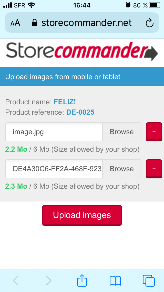 - Haz clic en el boton + rojo para añadir mas imagenes al producto