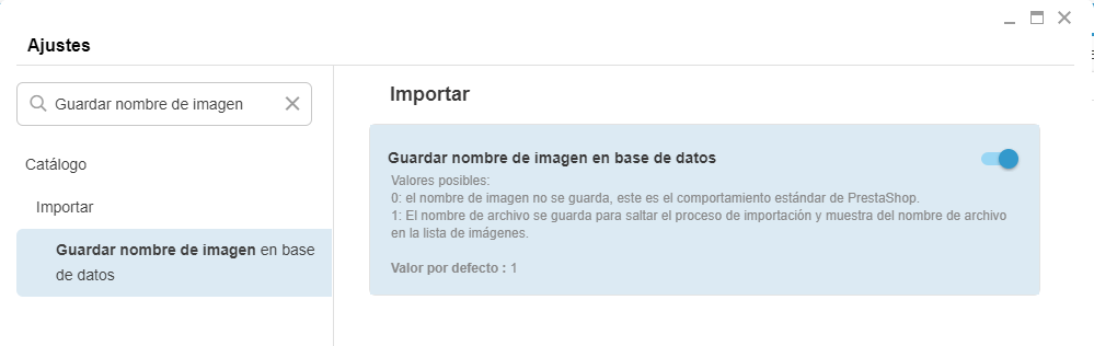 Seleccione el valor "1" para guardar el nombre del archivo de imagen y el valor "0" para que la imagen solo se importe una sola vez.
