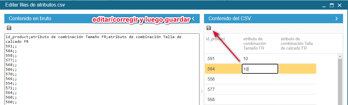 Esto le permite corregir rápidamente el problema encontrado - si el error está relacionado con los datos del archivo -, guardar la corrección y reiniciar la importación.