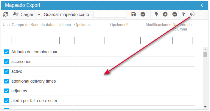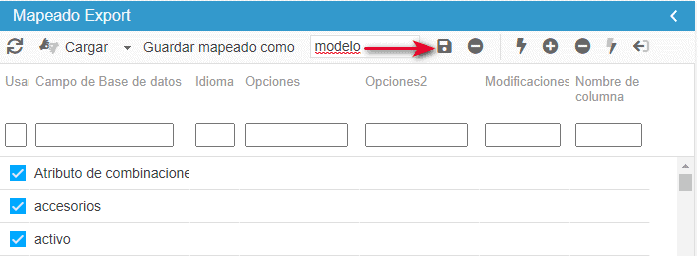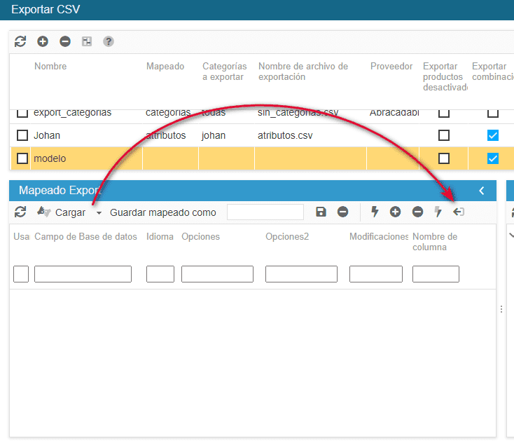 - En el panel del mapping, haga clic en el último icono - agrande el panel del mapping si es necesario