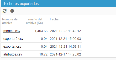 - También encontrará el archivo de exportación en el historial, panel "Archivos Exportados" abajo a la derecha