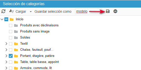 -> en la columna Categorías, haga doble clic para elegir la selección recién creada
