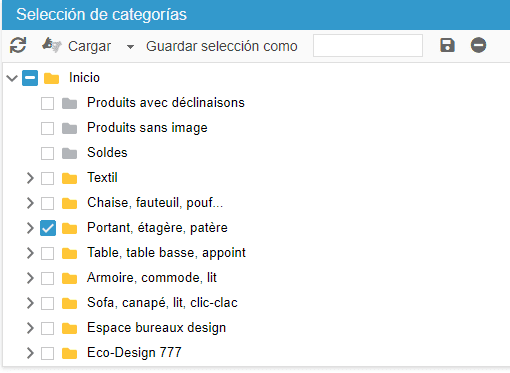 - En el panel de las categorías, seleccione una sola categoría, con muy pocos productos.