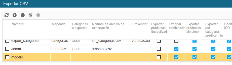 Para obtener un modelo completo de un archivo de importación CSV, puede utilizar la herramienta de exportación CSV de Store Commander que le permitirá extraer todas las informaciones de los productos que necesita para crear nuevos productos con import.
