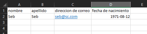 ¡Tenga cuidado! Excel tiene la costumbre de definir los formatos de las fechas, así que defina el formato antes de insertar las fechas en el archivo. Después de guardar el archivo, cárguelo en Sc.
