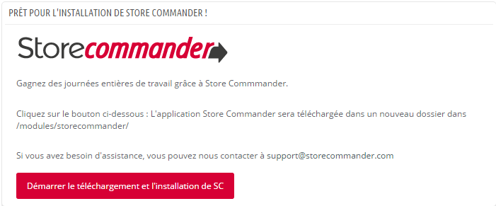Después de la confirmación, busque el módulo de instalación de Store Commander en la sección Administración y haga clic en «instalar».