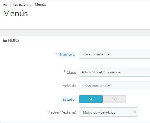 La pestaña Store Commander se muestra ahora en el menú Módulos y Servicios