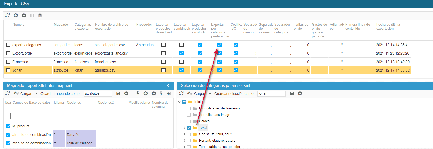Esta opción es muy útil cuando se realiza una exportación CSV y el número de productos exportados no se corresponde con el número de productos mostrados en la categoría seleccionada, cuando la opción "exportar por categoría por defecto" está marcada.