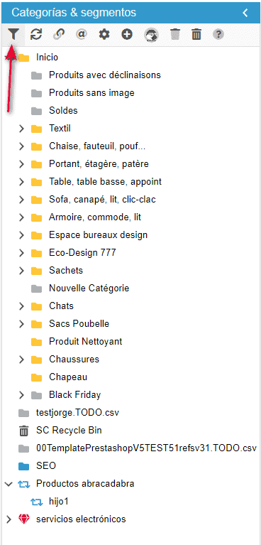 Su árbol de categorías puede incluir muchas categorías ocultas que afectan a la visualización de la lista en Store Commander.