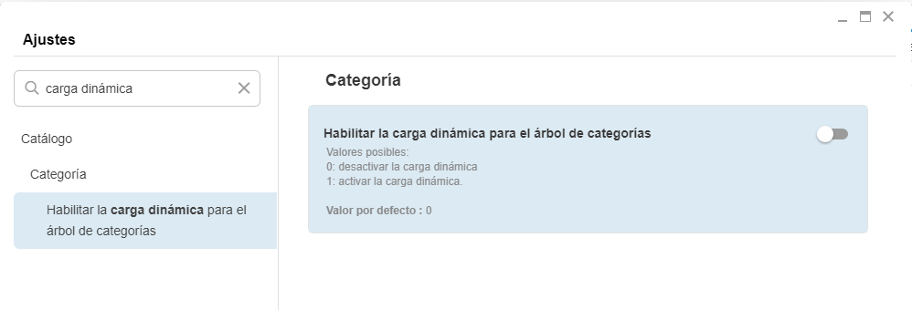 Por defecto, cuando se abre la interfaz dedicada a las categorías (menú Catálogo), se despliega el árbol de categorías completo en su totalidad.