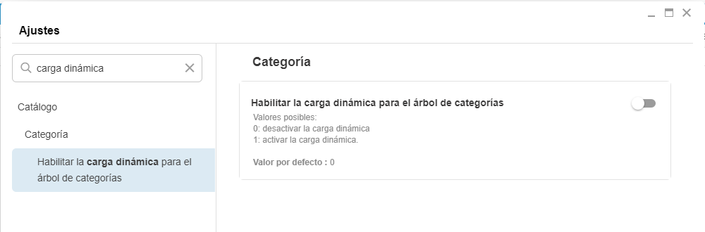 Desde la versión SC de marzo de 2019, una opción permite cargar sus categorías de forma dinámica, muy útil para las tiendas con una gran estructura de árbol en términos de rendimiento de visualización.