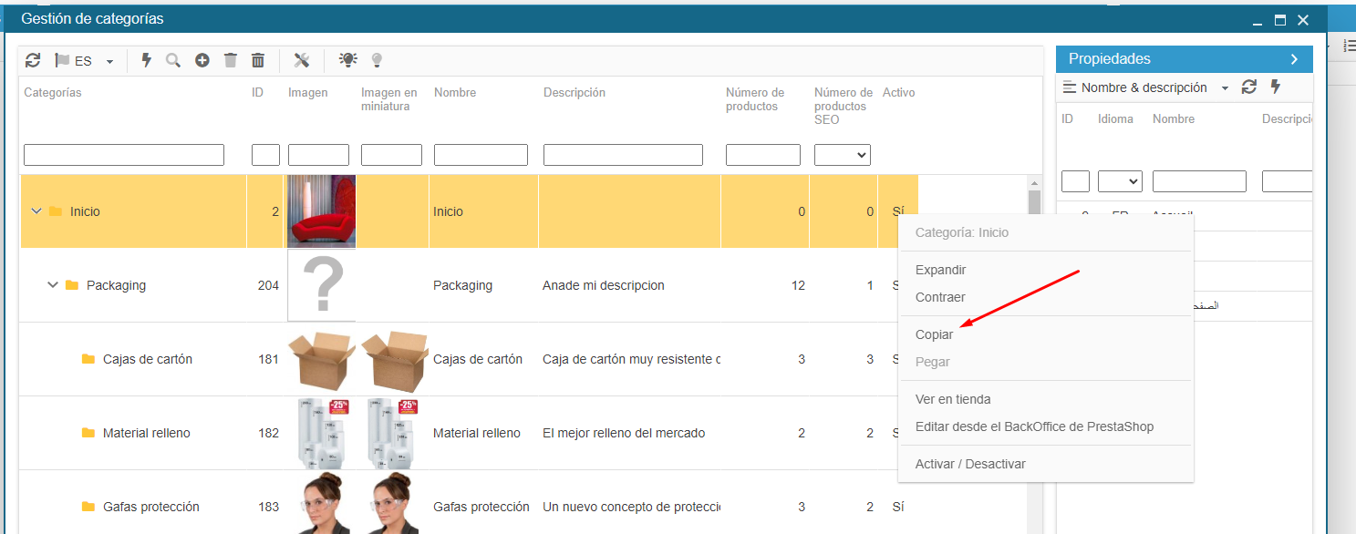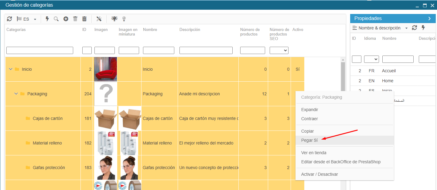 Para cambiar este estado en varias categorías, utilice la función copiar/pegar del menú contextual (botón derecho del ratón).