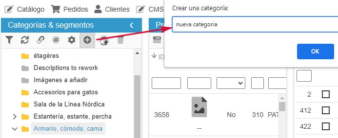 Store Commander le permite crear sus categorías directamente en la interfaz.