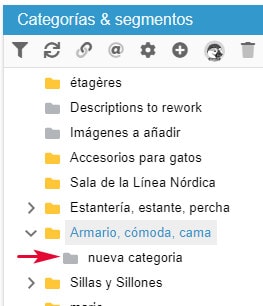 Por defecto, la nueva categoría se colocará por debajo de la categoría seleccionada, por lo que hay que seleccionar una categoría previamente.