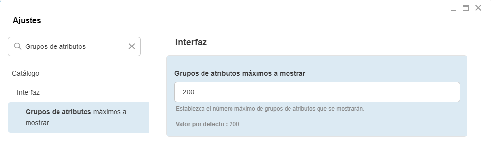 Haga doble clic para modificar este valor y definir el número de grupos que desea mostrar en la ventana de los grupos de atributos y versiones (menú Catálogo).