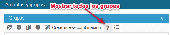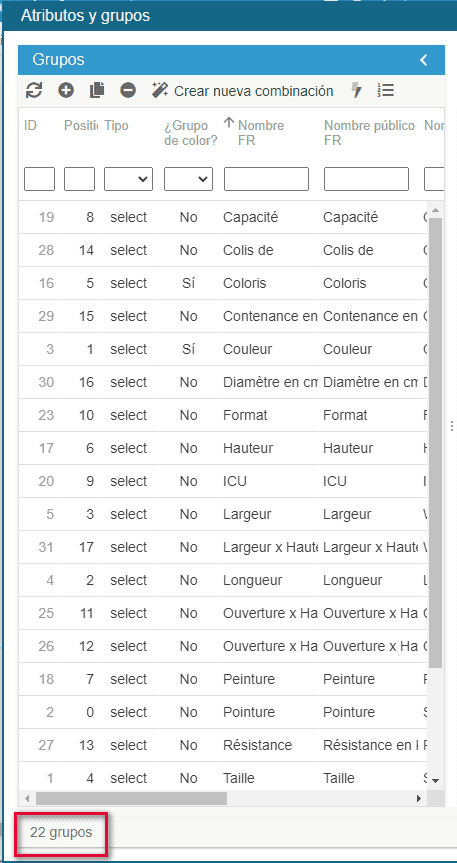 Cuando su tienda utiliza muchos grupos de atributos, varios centenares, la visualización en la ventana de gestión de los grupos y atributos de versiones puede tardar en cargar, a causa del gran número de grupos.