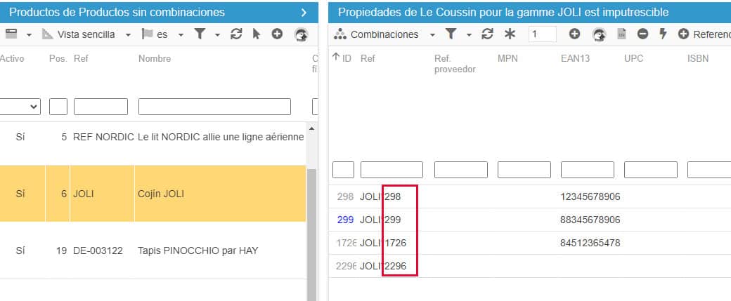 Si el producto padre no tiene una referencia, se utilizará automáticamente su ID.
