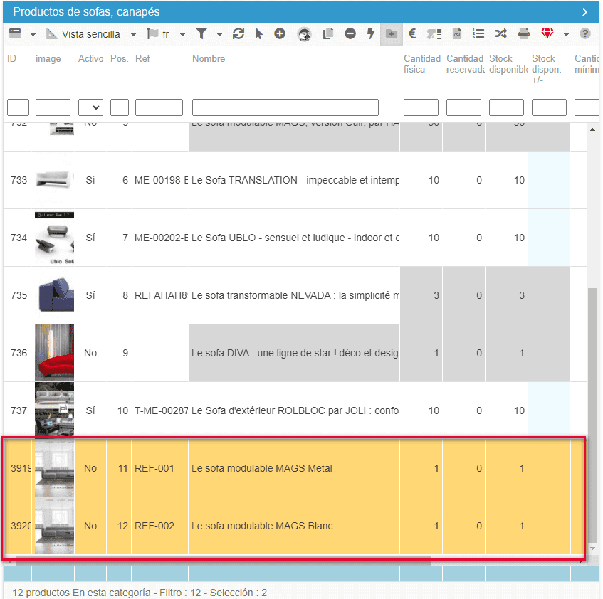 Después podemos activar estos 3 nuevos productos, y desactivar el producto con versiones.