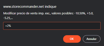 Luego indique la modificación, por ejemplo +2% en la captura de abajo, valide en OK, está hecho.