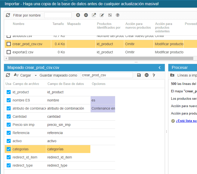 También puede añadir los campos "cantidad" y "precio sin IVA" a su exportación, para definirlos en las nuevas combinaciones que va a crear.