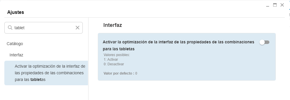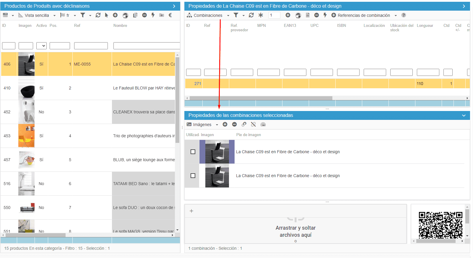 Cuando trabaje con sus combinaciones en una tableta o pantalla pequeña, puede simplificar la visualización de la sección combinaciones, especialmente la 4ª columna que contiene las propiedades de la combinaciones.