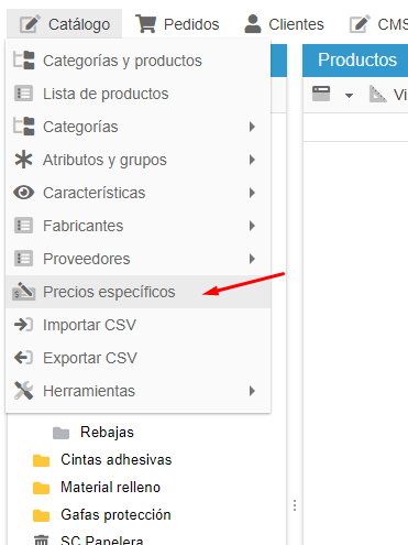 Vaya al menú Catálogo > Precios Específicos para acceder a la interfaz.