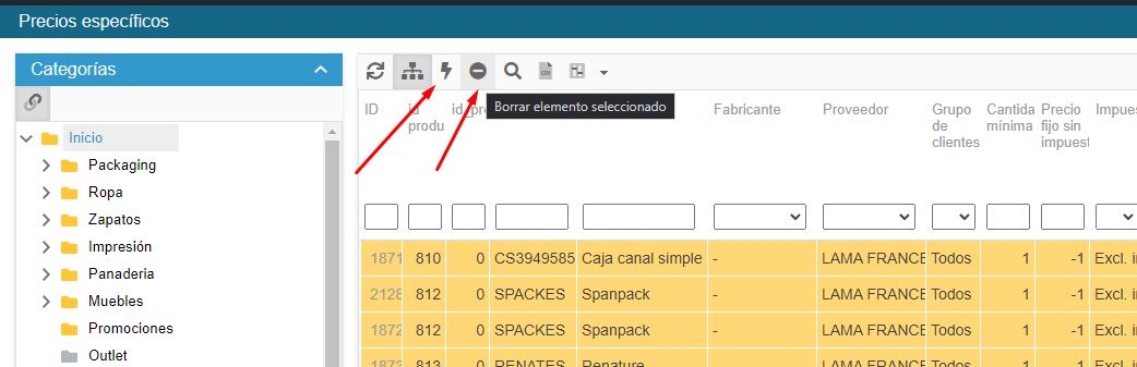 Aquí vamos a ver cómo eliminar sus declinaciones de precios especiales en masa desde la interfaz dedicada.