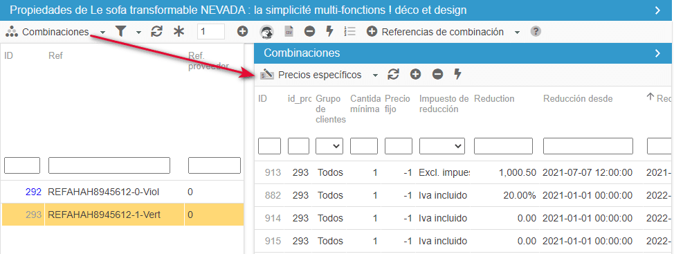 Con Store Commander, no solo puede aplicar precios rebajados a los productos, sino también a versiones concretas de los mismos.