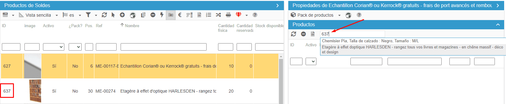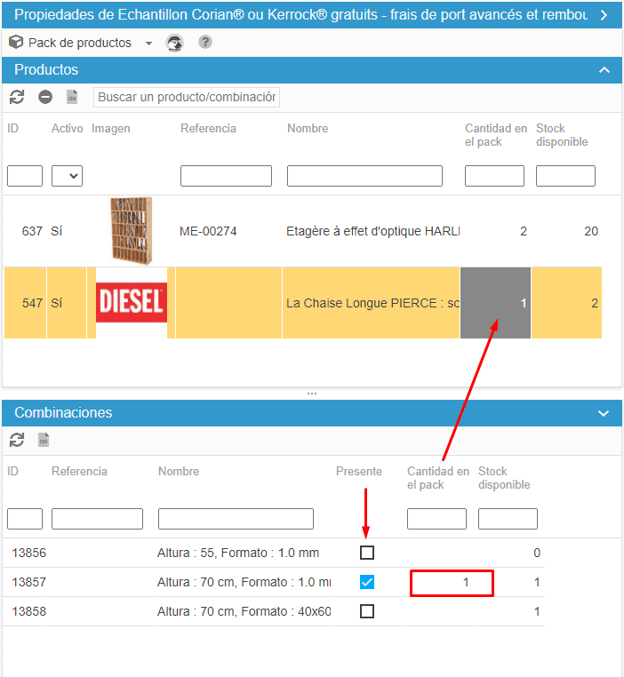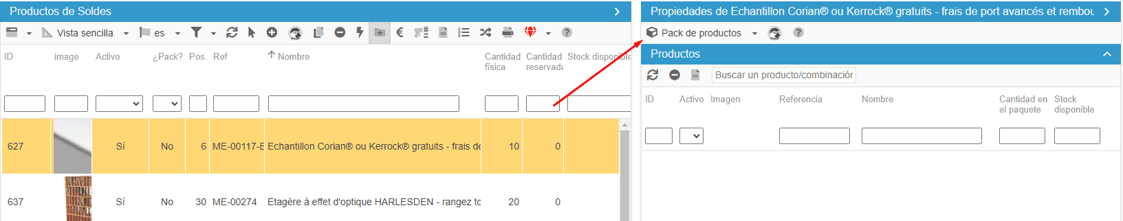 La gestión de los packs de productos (función nativa de PrestaShop) está disponible en Store Commander instalado en las versiones PrestaShop 1.6.1.14 y superiores.