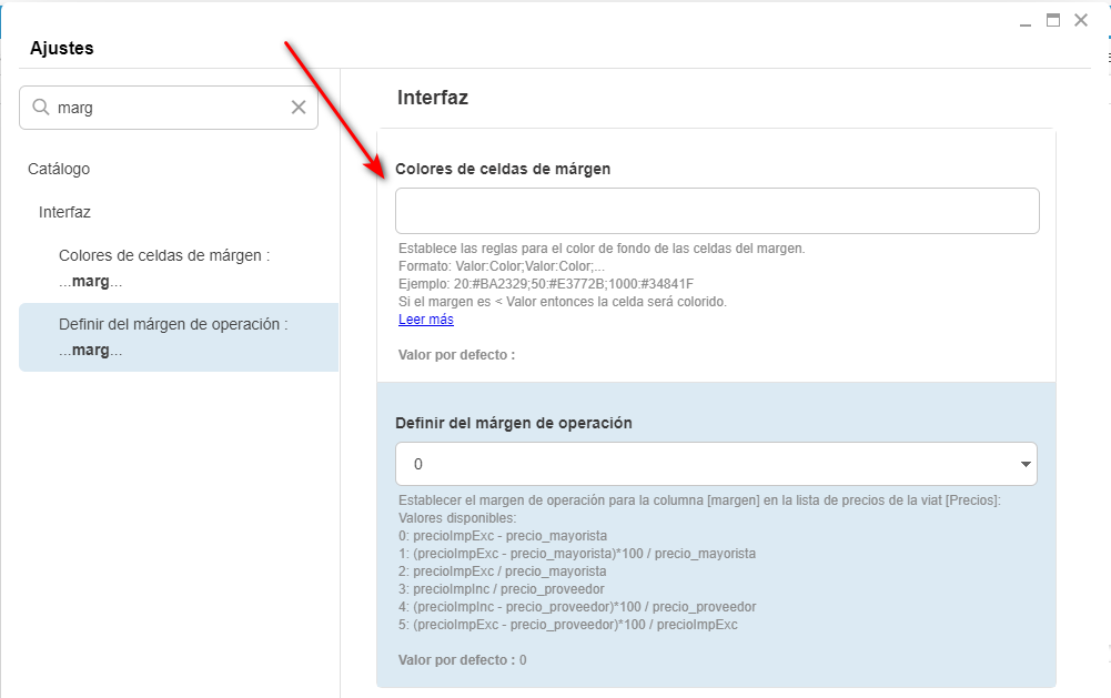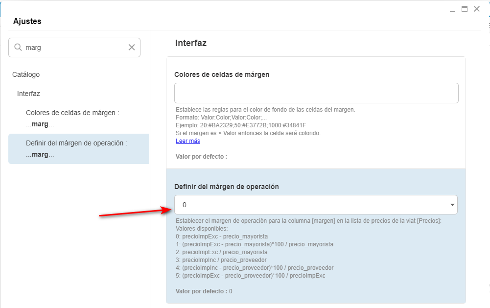 Puede encontrar más información sobre el cálculo del margen en el menú Herramientas > Ajustes > Interfaz > Cálculo del margen.
