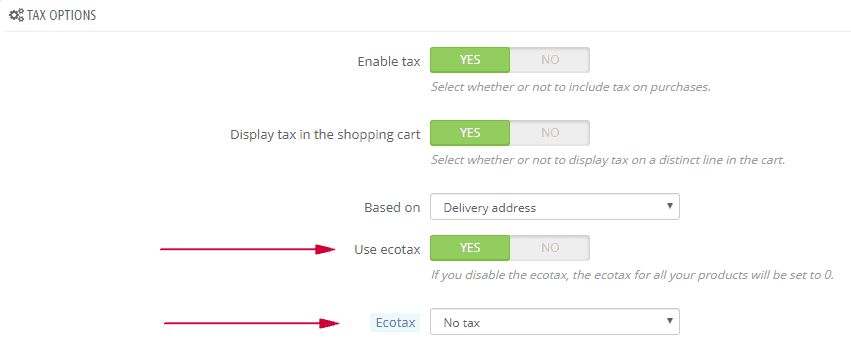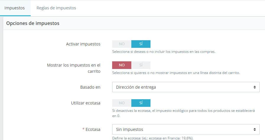 Si utiliza una versión de PrestaShop inferior a la 1.5, la columna de Ecotasa se muestra en la interfaz de Store Commander cuando se activa la opción correspondiente en el backoffice de PrestaShop > Pago > Impuestos