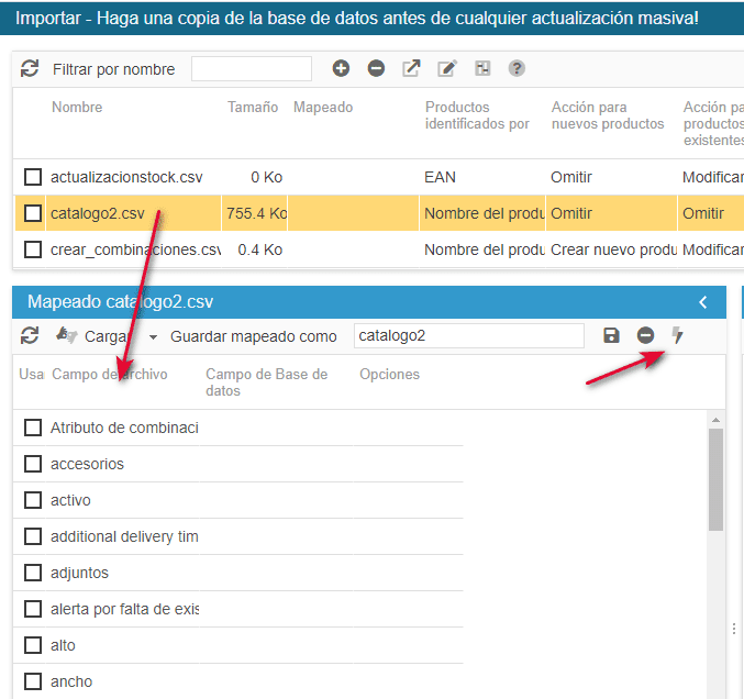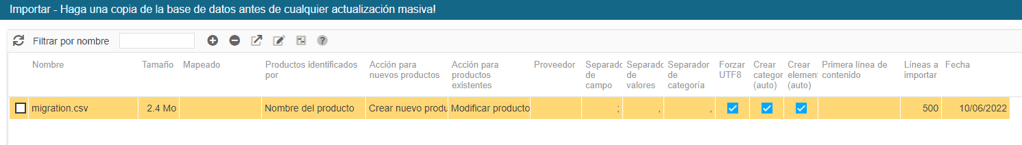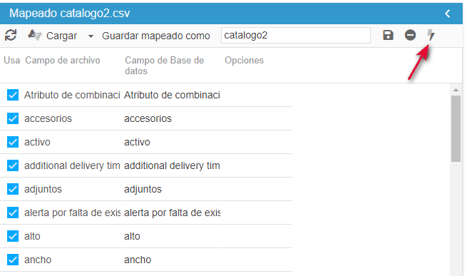 Esta opción le permite cargar solo los campos necesarios para la importación al migrar productos de una tienda a otra.