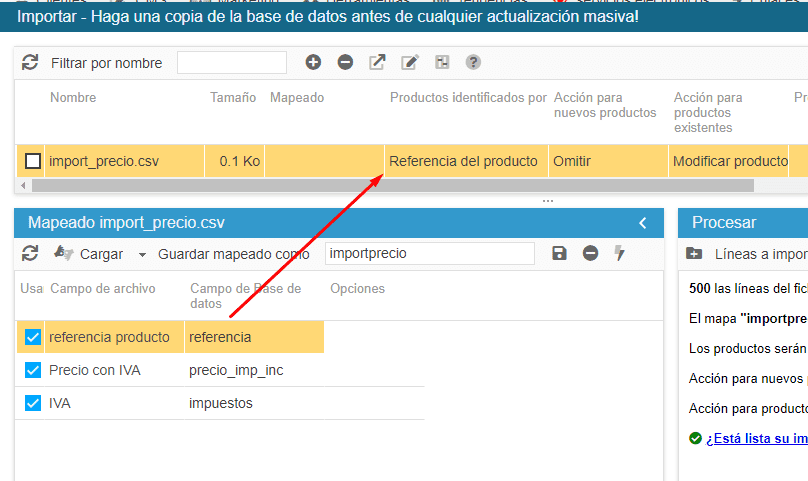 - El identificador del producto, es decir, el nombre del producto, su ID, su referencia o su código EAN13. Lo importante es que ese identificador sea único en cada producto (que no esté duplicado).