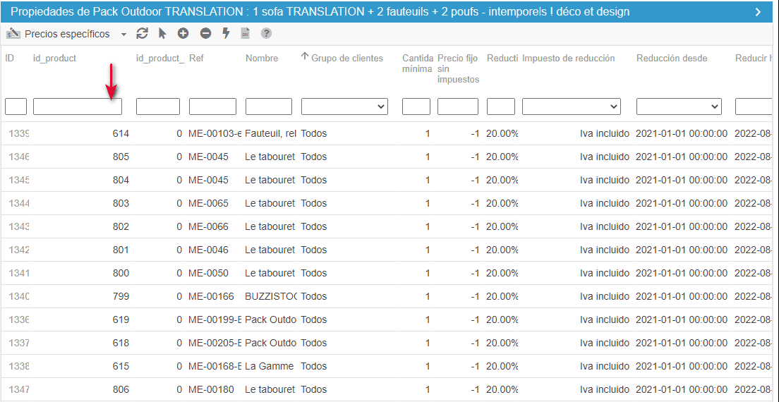En la línea creada, aparecerán los ID de todos los productos seleccionados