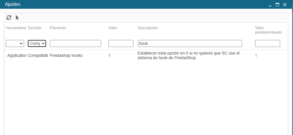 Store Commander incluye una opción de llamada de hooks de PrestaShop que está activada por defecto.