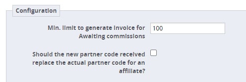 GetMyAffiliates incluye una opción en la pestaña 'Configuración" llamada '¿El nuevo código de colaborador recibido debe sustituir al actual código de colaborador para un afiliado?"