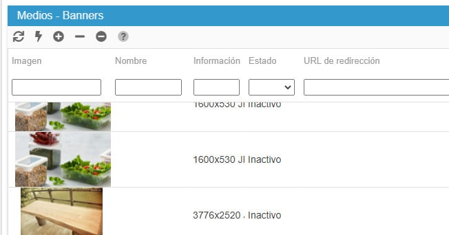 Tiene la posibilidad de activar o desactivar una imagen específica y también de añadir una URL de redirección para una imagen de su elección.