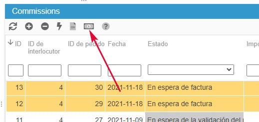 Filtrando todos los pedidos "facturados", puede con un solo clic "pagar todas estas comisiones" haciendo simplemente clic en el icono correspondiente