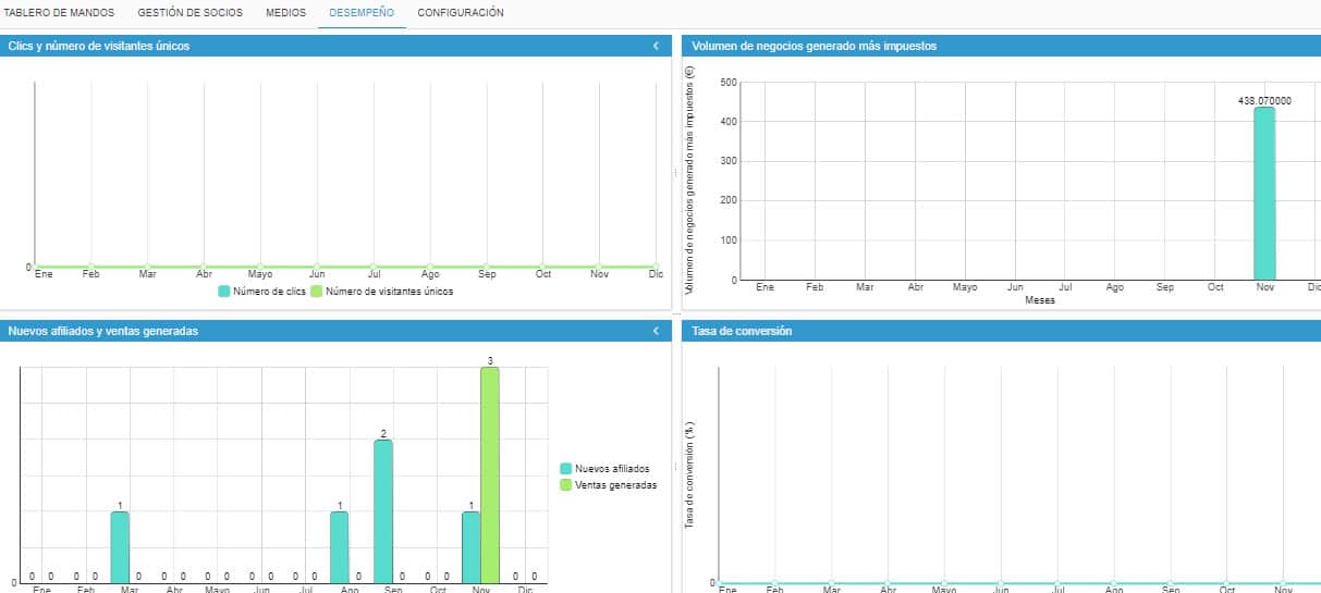Cada partner tiene acceso a su propio espacio para consultar los datos del programa de afiliación, como sus afiliados, sus comisiones, y puede también seguir sus rendimientos.