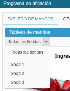 Si trabaja en modo multitiendas, la interfaz muestra un menú desplegable que le permite mostrar los datos de una tienda seleccionada.