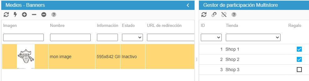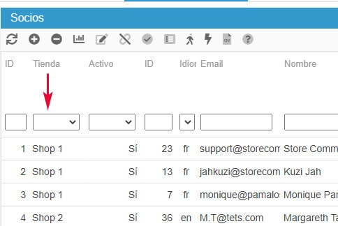 Esta opción está disponible en todas las pestañas en forma de menú desplegable o bien de columna "tienda" en las tablas.